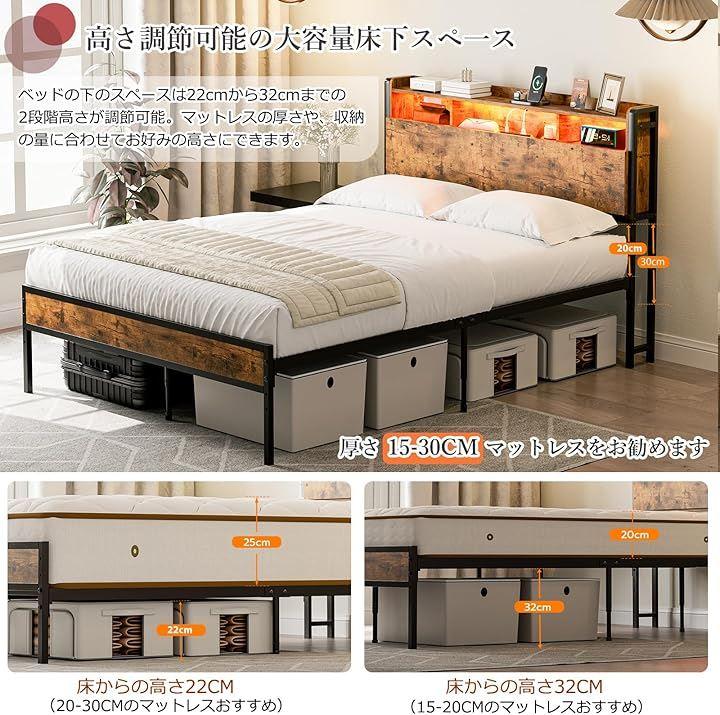 マットレスの厚みに合わせて最適な高さを選べるのはもちろん、床下の空間を収納として有効活用できます。