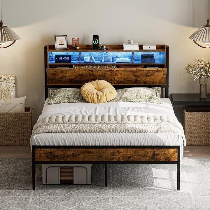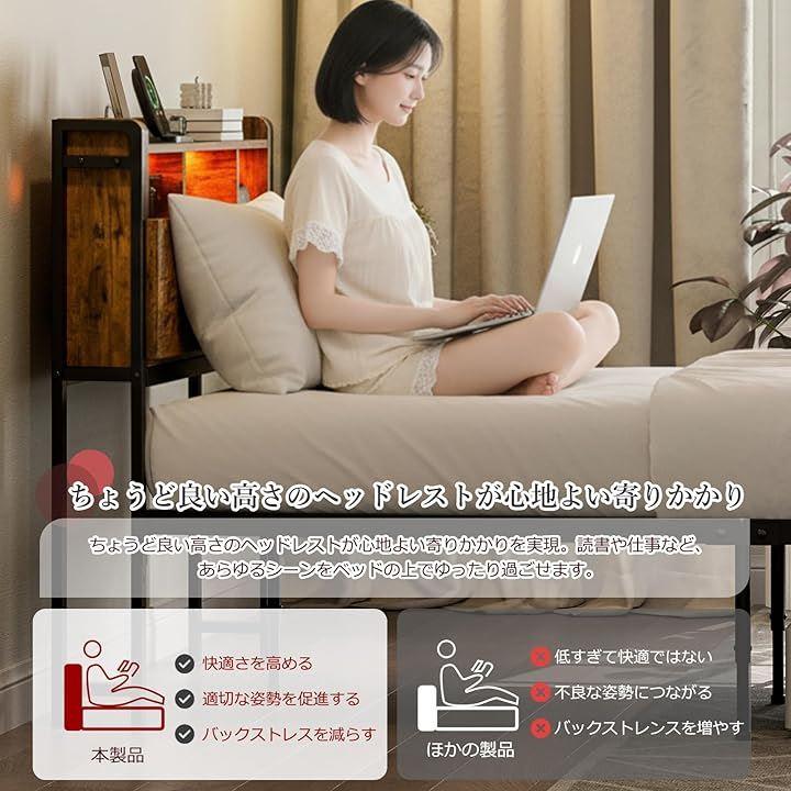 IKIFLY ベッドフレーム シングル 収納宮棚付き パイプベッド コンセント付き シングルベッド スチールベッド LEDライト付き 2段階高さ調整 頑丈 カビ防止 安定性 耐久性 耐荷重350KG 組立簡単 (幅97x奥行212x高さ98cm,S ホワイト)