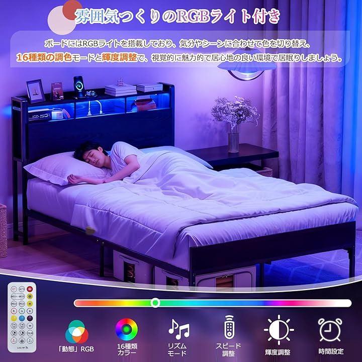 「居眠り雰囲気つくりのRGBライト付きヘッドボード」ヘッドボードに内蔵されたマルチカラーLEDライトは、お好みの色や明るさ、点滅速度を自由に調整可能。