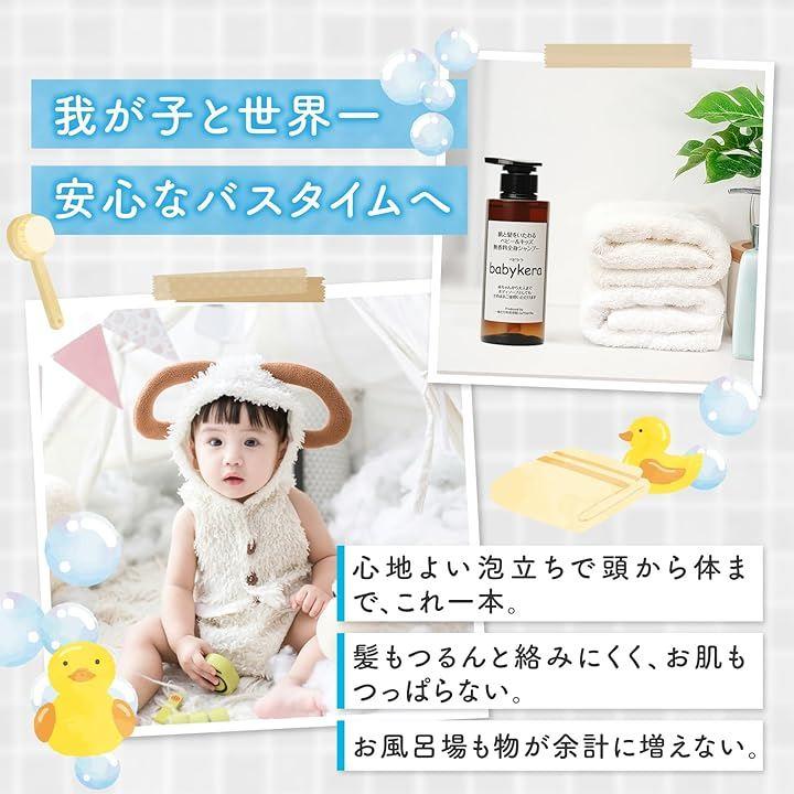 「肌トラブルが心配な赤ちゃんに、美容院専売品クオリティのシャンプーを」 ベビケラは、美容院監修の知識を活かしたベビー&キッズ向け全身シャンプーです。