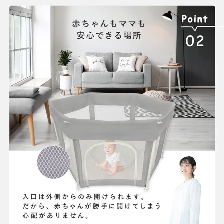 メッシュ素材で周りが見えるため、赤ちゃんも安心して遊べます。