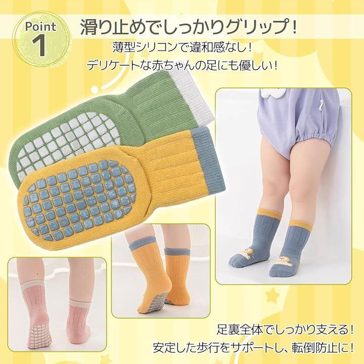 滑り止めシリコンで歩行をサポート。ずり落ちにくいフィット感抜群のリブ仕様と赤ちゃんの足にフィットする丁寧な作りです。