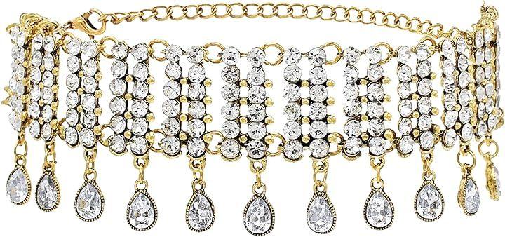 華やかな存在感を放つ、デザイナーズチョーカー」 このエクスクルーシブなダンス用チョーカーは、一際目を引くラインストーンと、光り輝くドロップ型ペンダントでデザインされています。