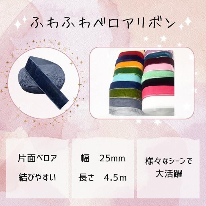 「KAZARI日和 ベロアリボン」は、上品な光沢と柔らかな質感が特徴のベルベット素材を使用した幅25mmのリボンです。