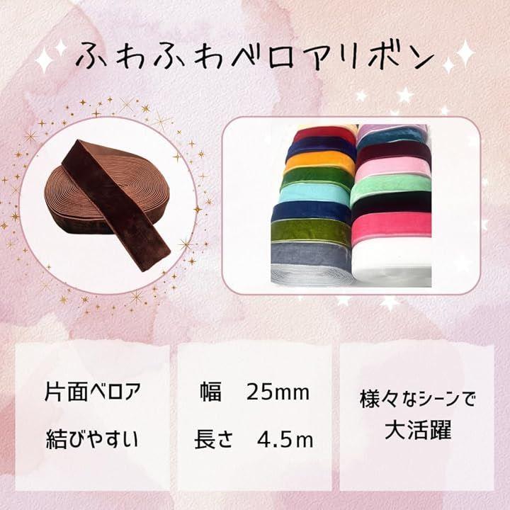 「KAZARI日和 ベロアリボン」は、上品な光沢と柔らかな質感が特徴のベルベット素材を使用した幅25mmのリボンです。
