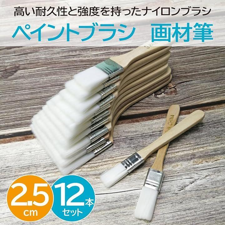 Paint brushes, flat brushes, art supplies, brushes, paints, 12 pieces, 2.5cm