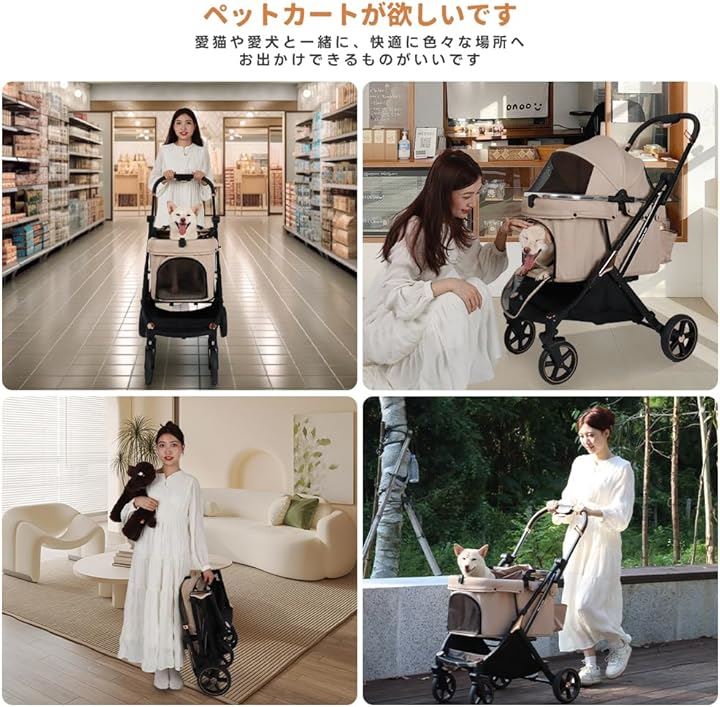 「中小型犬向け・耐荷重30kg・内部スペース十分」ペットカートはベビーカー用全アルミ合金+炭素鋼素材を使用し、強度と軽さを同时に実現。多頭飼い&小~中型犬向けの耐荷重—30kg、犬バギー重量7kgレベルと軽く女性も取回しが非常にスムーズ。