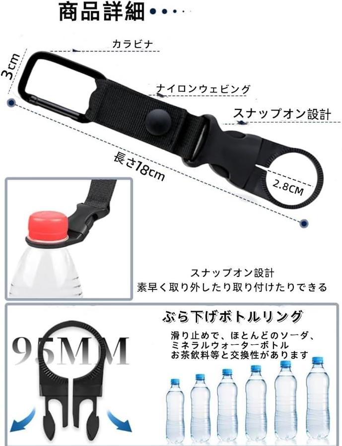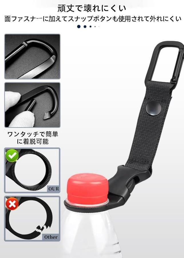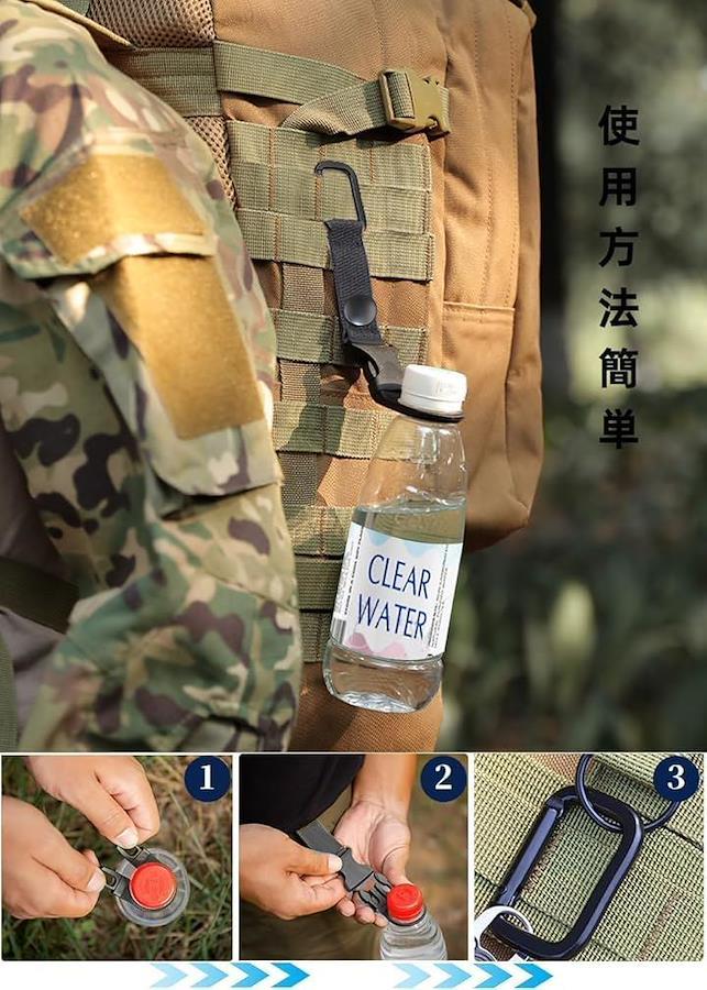 「持ち運びに便利」 旅先や外出するときに、ペットボトルホルダーがあるなら、水筒や飲料等カバンにかけて、喉が渇いた時にバックルを外すだけで飲めます。