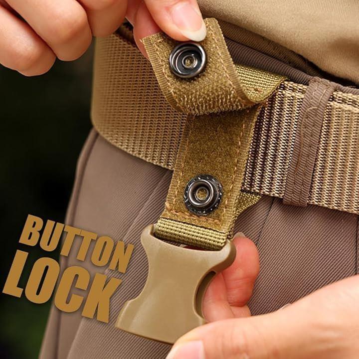 (2)面ファスナーとボタンのダブルロックでベルトなどにガッチリ固定することも可能です。
