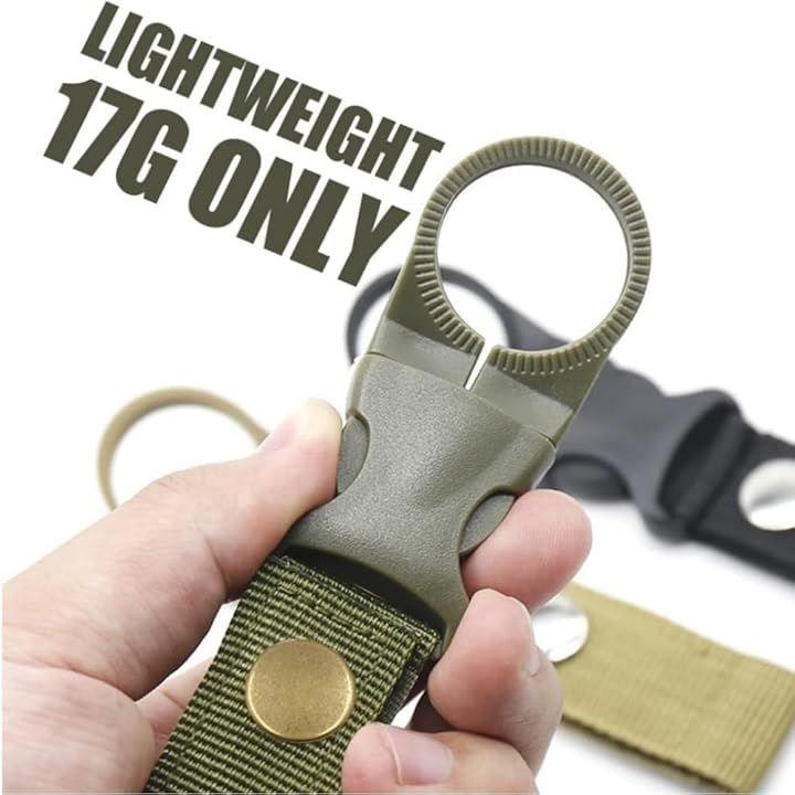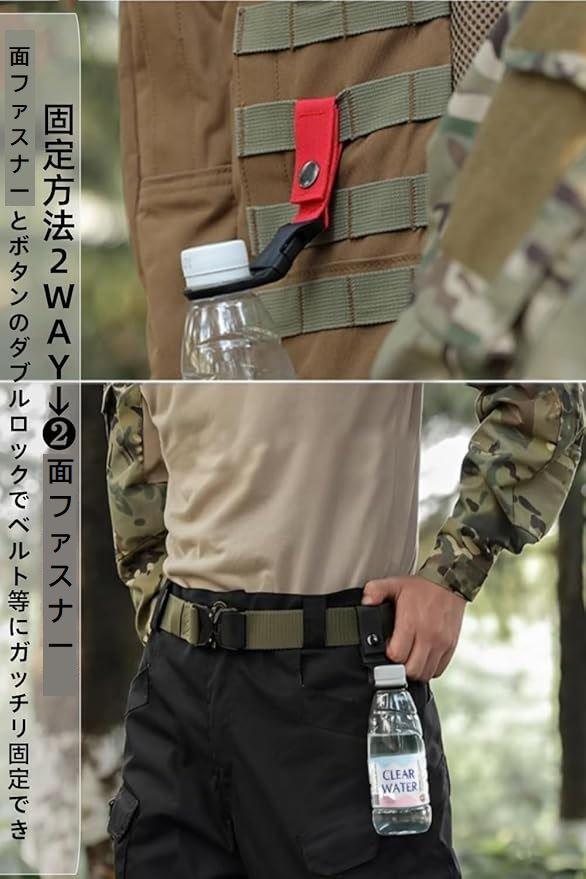 「心強い相棒」TANLUERボトルホルダーは面ファスナー、ボタン、カラビナ3種の留め具がペットボトルをしっかり固定されています. 高い支持力があり、気づいたら外れていたというようなことにはならないと思われます。