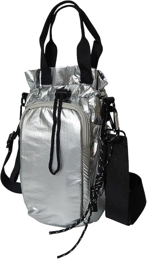 「素材」ナイロン 「仕様」開閉:巾着、内側:メッシュポケットx1、外側:オープンポケットx2、ファスナーポケットx1、カラビナx1 「サイズ」横幅:18cm、高さ:26cm、マチ:10cm、持ち手高さ:10cm、ショルダー:65cm~124cm 「重さ」約180g * ペットボトル500mlが2本収納可能ですが形状により不可能な場合がございます。