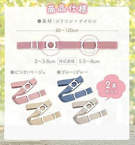 「商品仕様」素材:シリコン+ナイロン/サイズ:ストラップ60‑120cm/セット数:2本セット/対応直径:3–3.8cm・5.5–8cm