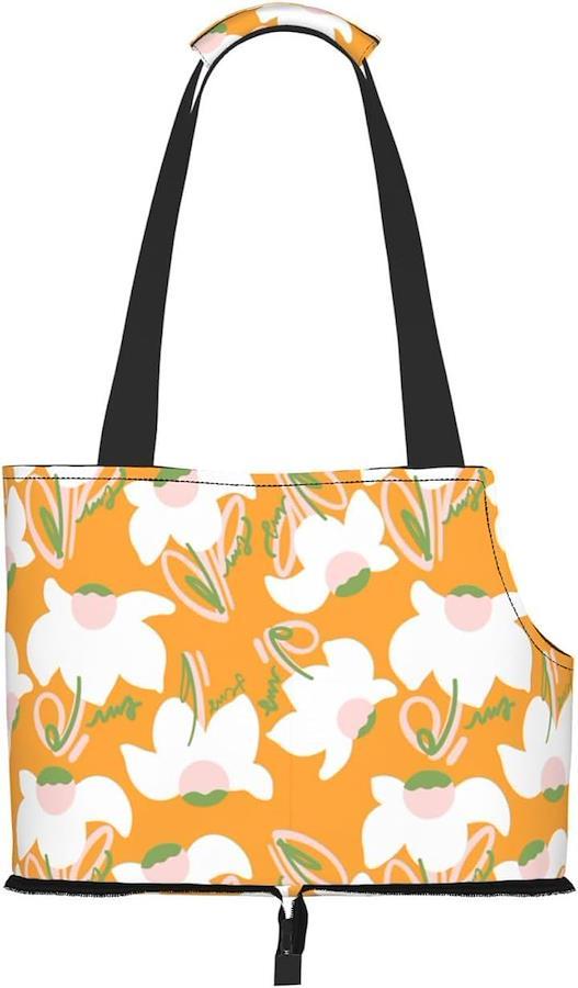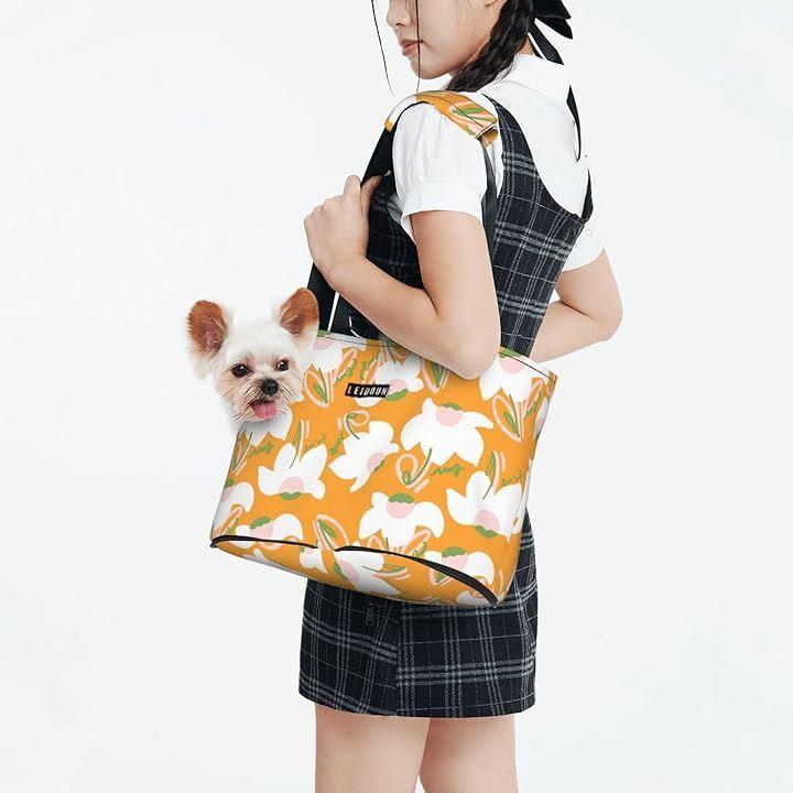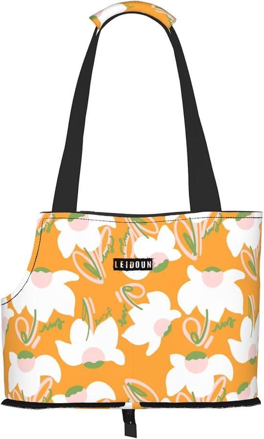 ダークイエローのかわいい花柄プリントが目を引く、Leidounのペット用携帯折りたたみショルダーバッグは、おしゃれなデザインと実用性を兼ね備えています。