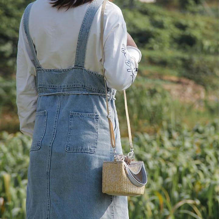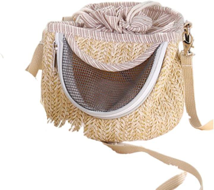 「仕様1:見た目と実用性を兼ねたデザイン」涼しげな印象の編み込み風素材をベースに、柔らかな布地を組み合わせたデザインが特徴の小動物用キャリー。