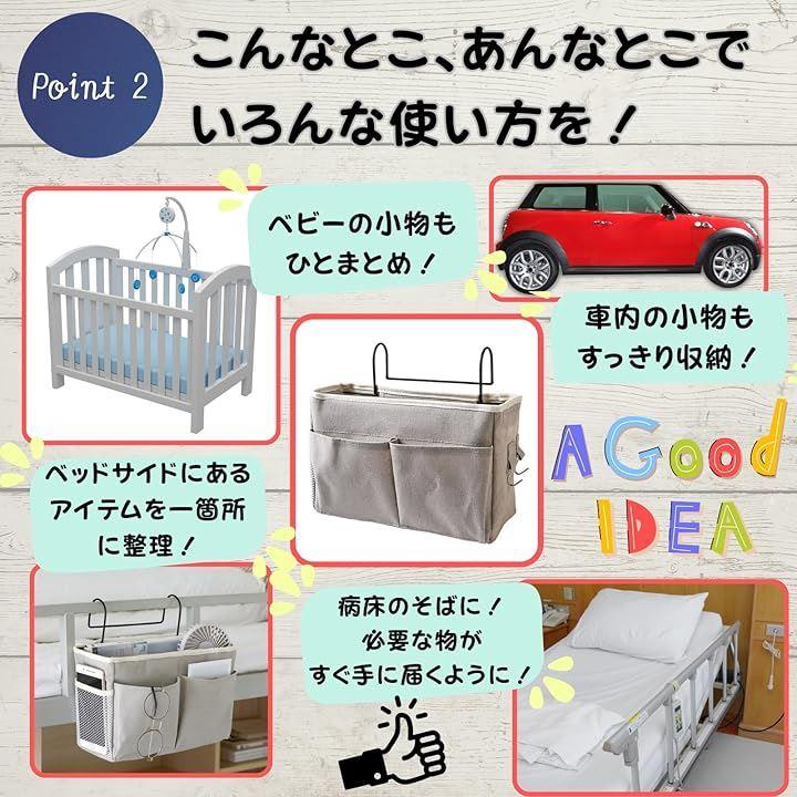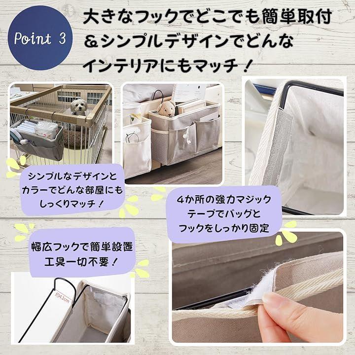 ベッドサイドやケージに簡単に取り付けられるので、おむつやおもちゃ、お手入れ用品などをスマートに整理できます。