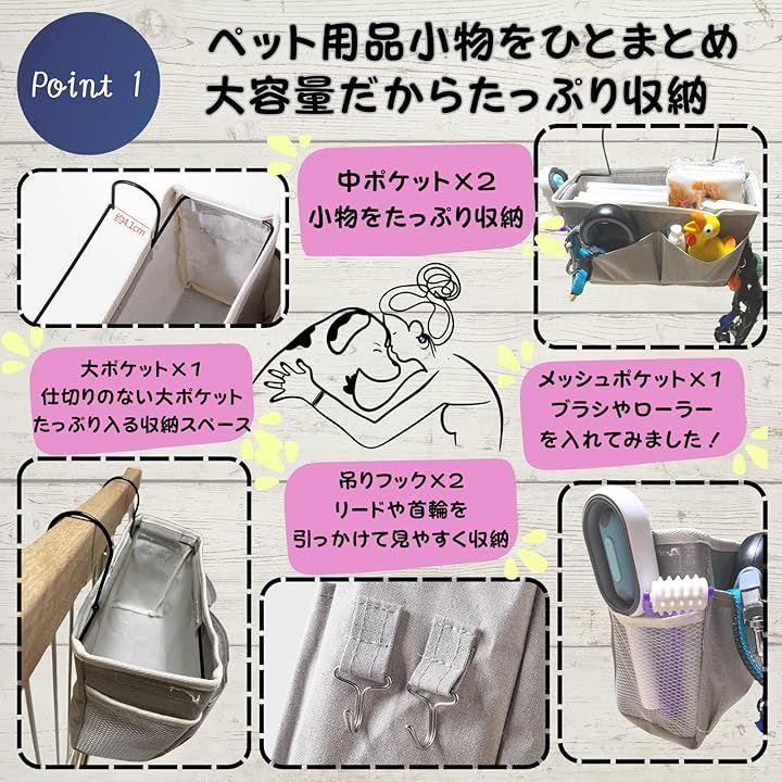 「多機能デザイン」吊り下げ収納には複数のポケットがあり、小さなアクセサリーから大きなアイテムまで、様々なサイズのペット用品を整理できます。