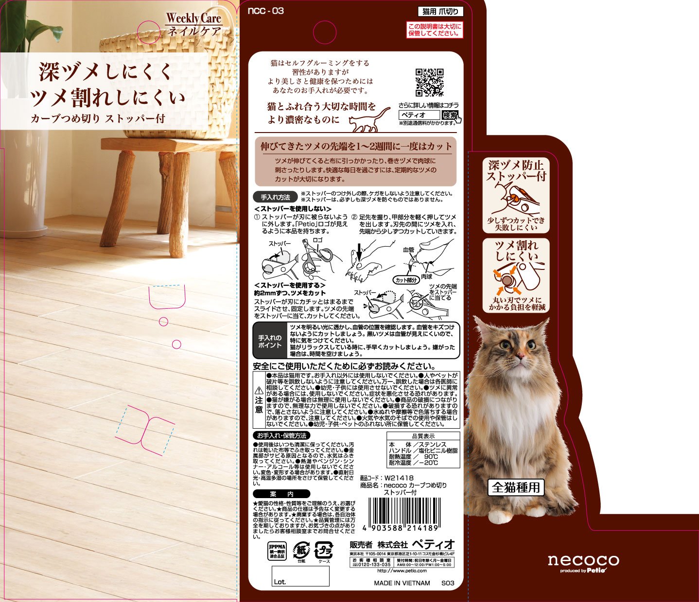 本体サイズ(幅X奥行X高さ):0.8×5.6×8cm本体重量:0.05kg原産国:ベトナム深ヅメ防止ストッパー付きとがった細いツメも切りやすく、ツメ割れしにくい刃先