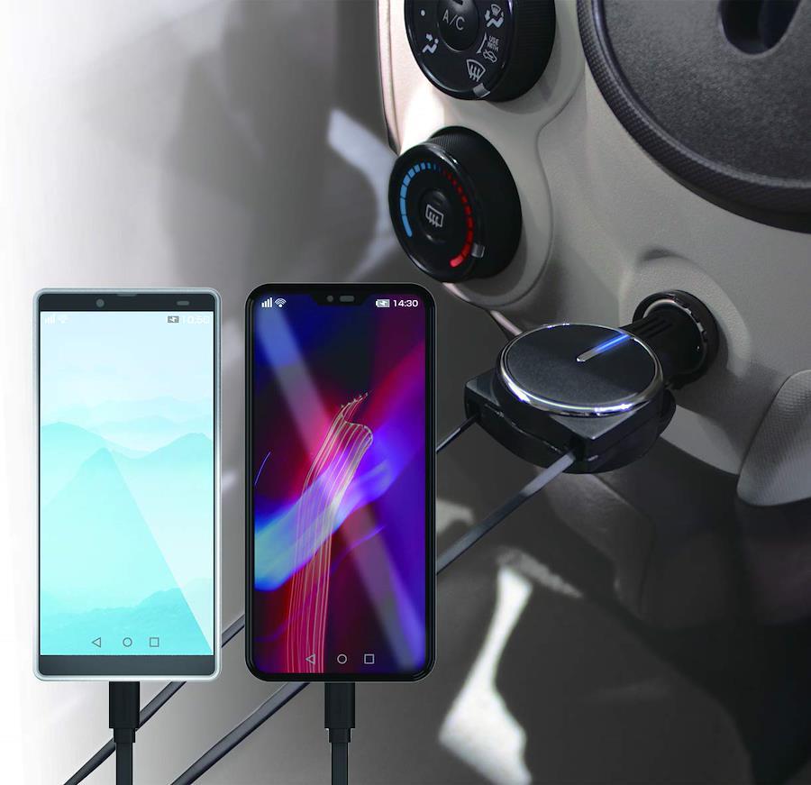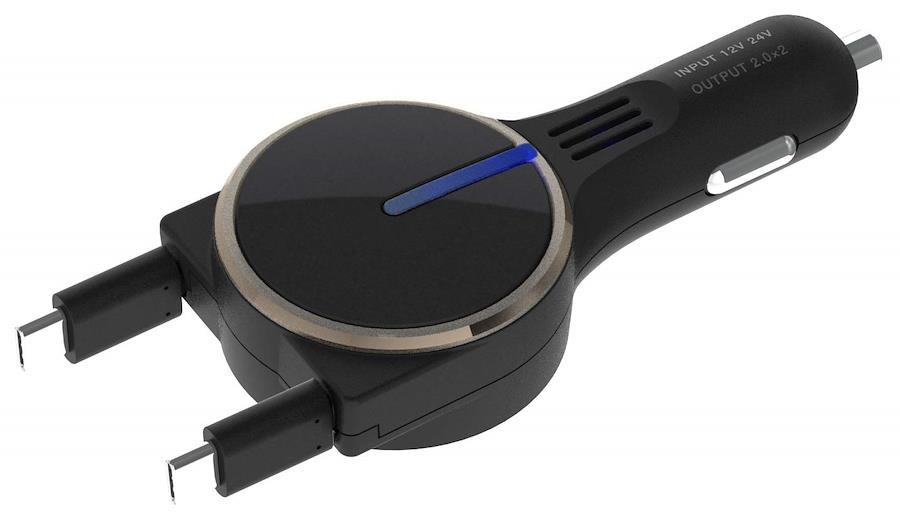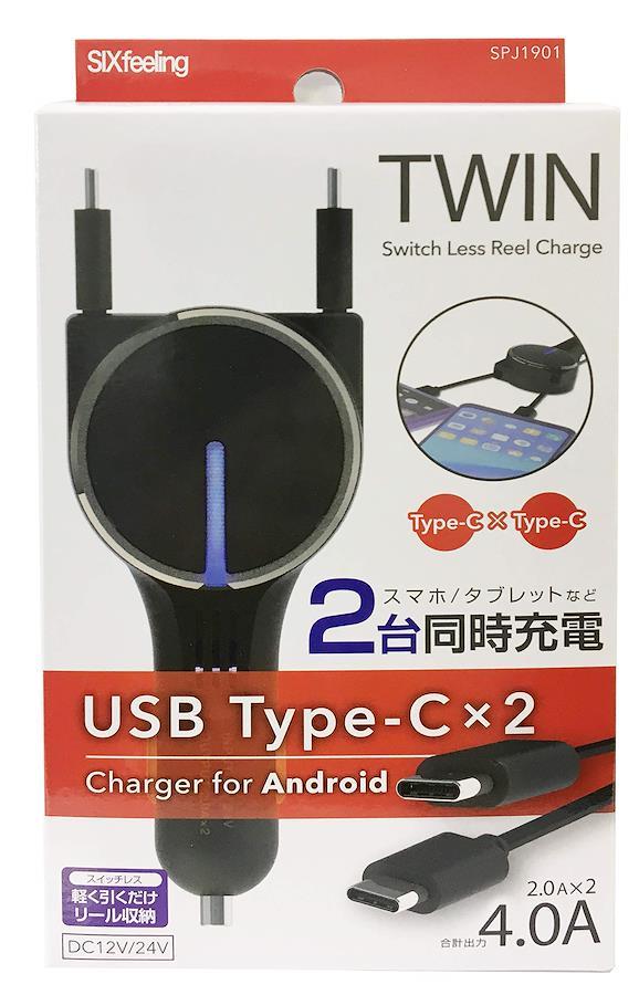 3営業日以内に発送≪新品未開封品≫:2つのデバイスの充電が同時に出来るリール充電器です。車内でType-C端末搭載のスマートフォンを充電できます。 スマートフォン・タブレットに対応 使用電圧範囲:DC12V/24V 国産車用 定格出力:DC5V/4.0A(アンペア)片側2.0A コード長 約75cm