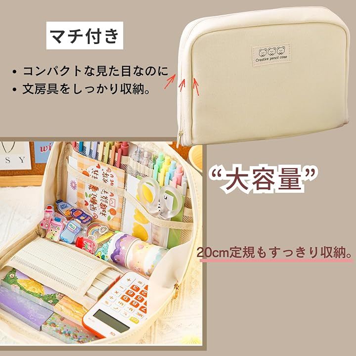 マチ付きで、コンパクトな見た目なのに、文房具をしっかり収納。