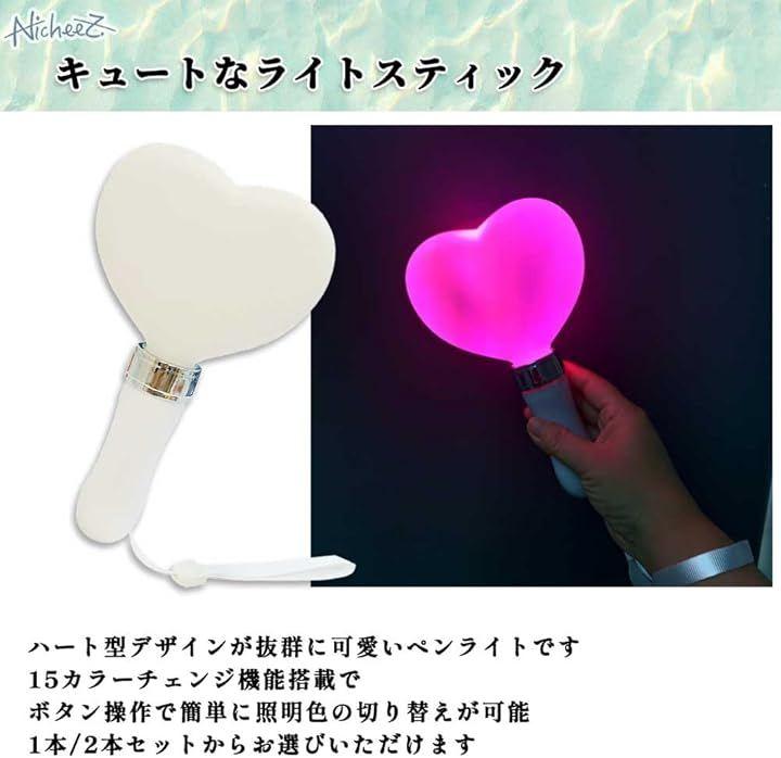 「商品内容」ハート型ペンライト1本/2本セット 材質:ABS/PP カラー:15カラー切替点灯 サイズ:縦/約19.5cm 横/約11.5cm 単4電池3本使用 *電池は付属しません