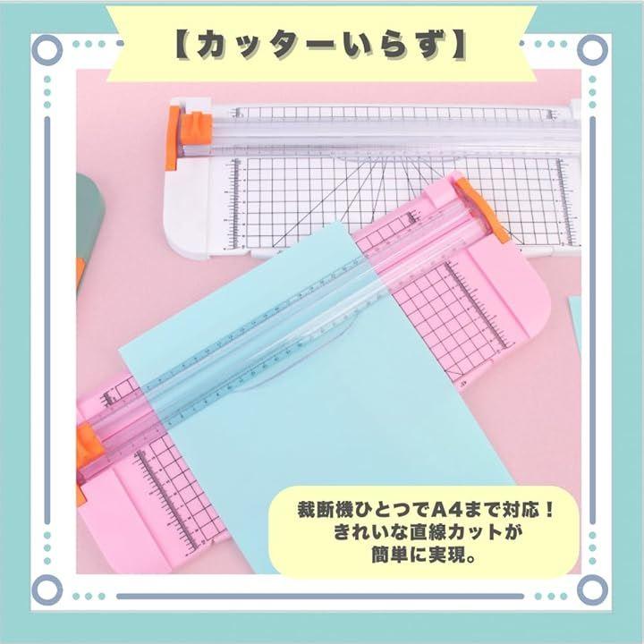 「カッターいらず」裁断機ひとつでA4まで対応。きれいな直線カットが簡単に実現。