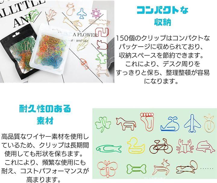 「カラフルな色合い」150個セットのクリップは、鮮やかな色合いで視覚的に魅力的です。