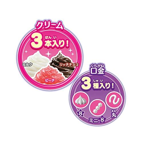 本物みたいなホイップるクリームをしぼって、かわいいスイーツ作品をつくっちゃお! 新登場のツヤッとかわいいとうめいクリームと、ゴールドのデコパーツを使って、スイーツアクセを作れます! ケーキサーバーはスイーツを付け替えられるから、好きなスイーツをアクセサリーにしてたのしんでね♪ クリーム3本と口金3種、スイーツパーツも全て入っているから、これだけで遊べるよ。 【セット内容】 ・ホイップるとうめいクリーム×3(ミルククリーム、ピーチクリーム、リッチチョコクリーム) ・レインボークリームホルダー ・口金3種(☆8×1、ミニ☆8×1、丸×1) ・スイーツパーツ×9種(パティシエガイドつきスイーツを含む) ・リング×1、ボールチェーン×1、クリームバンド、そうじ棒 本物みたいなホイップるクリームをしぼって、かわいいスイーツ作品をつくっちゃお! 新登場のツヤッとかわいいとうめいクリームと、ゴールドのデコパーツを使って、スイーツアクセを作れます! ケーキサーバーはスイーツを付け替えられるから、好きなスイーツをアクセサリーにしてたのしんでね♪ クリーム3本と口金3種、スイーツパーツも全て入っているから、これだけで遊べるよ。 (C) EPOCH