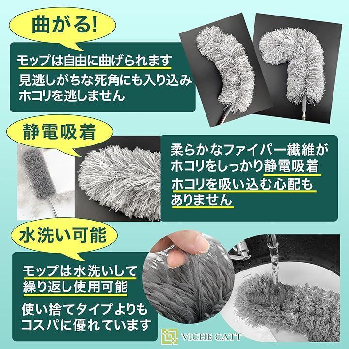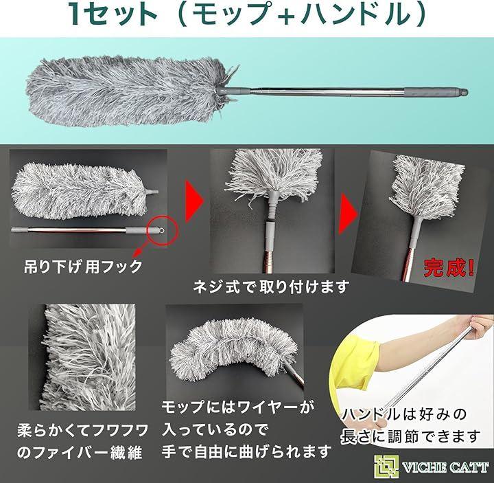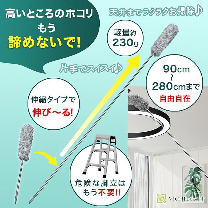 高~い所のホコリ取りも片手でラクラク。もう諦めないで。「よくあるタイプのハンディモップでは短くて届かない」「掃除機は重いし、枝を伸ばしても届かない」「脚立に乗ってのお掃除は危険」などなど。