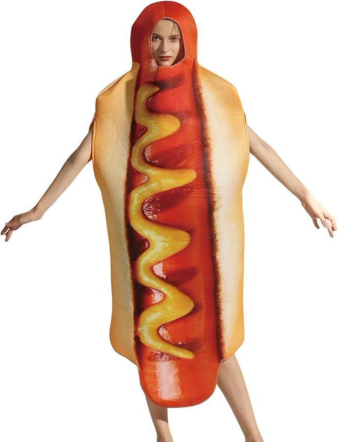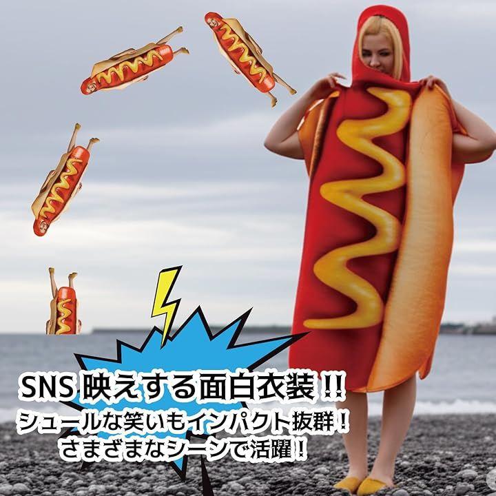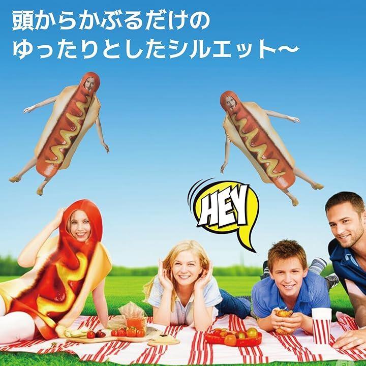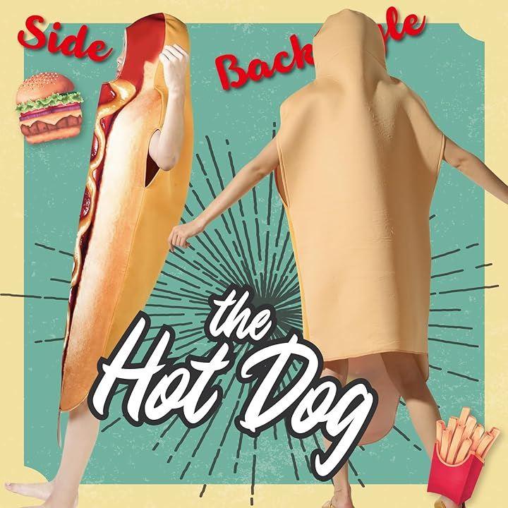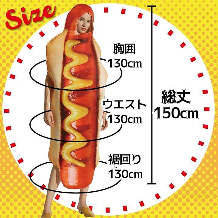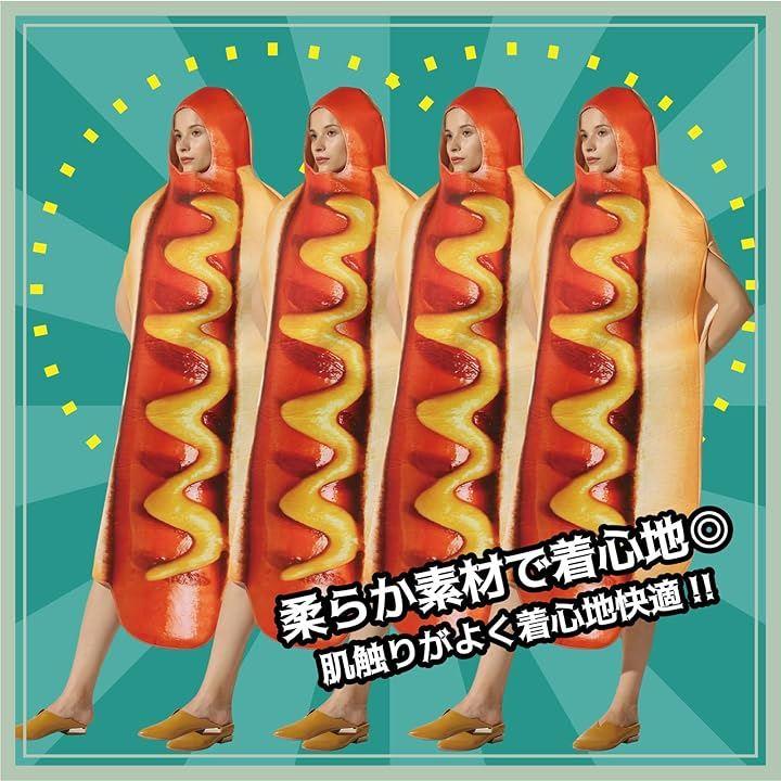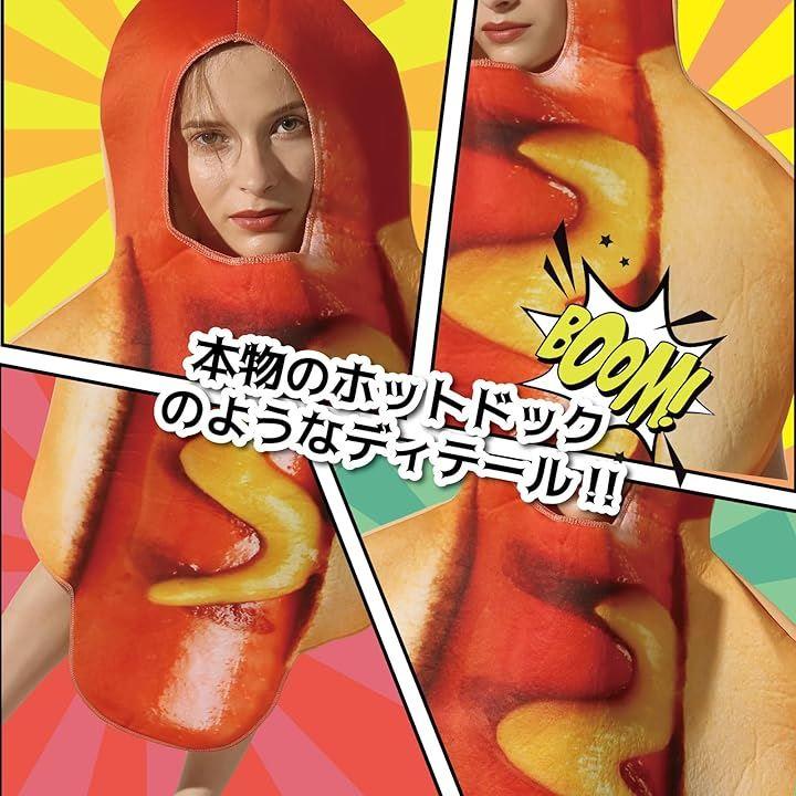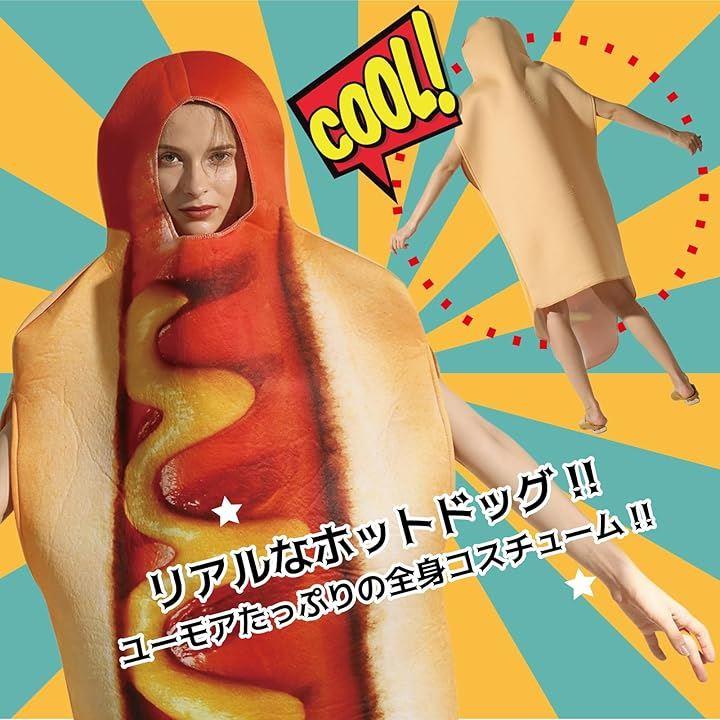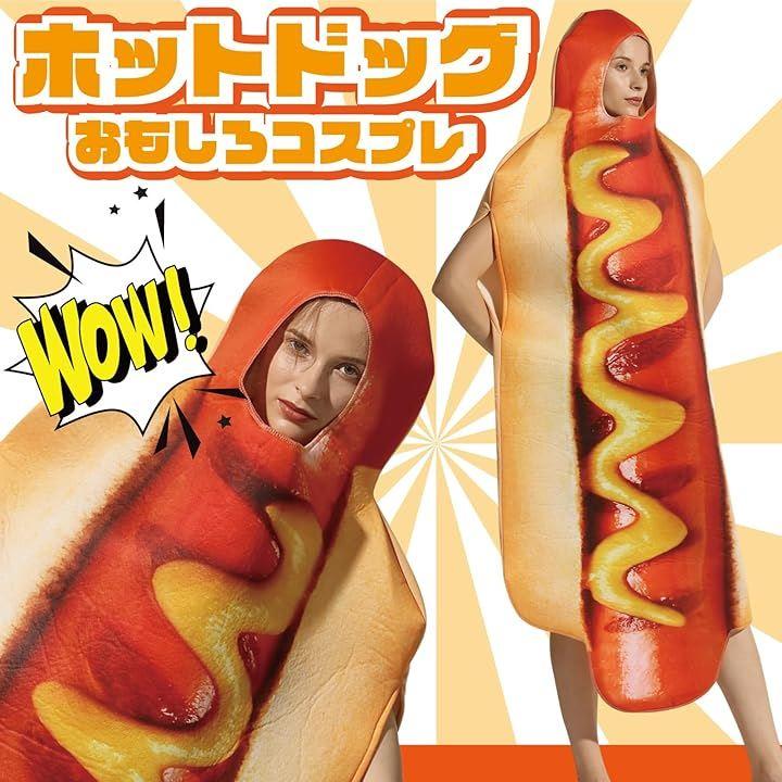 「ユニークなホットドッグデザイン」リアルなホットドッグを再現した、ユーモアたっぷりの全身コスチューム。