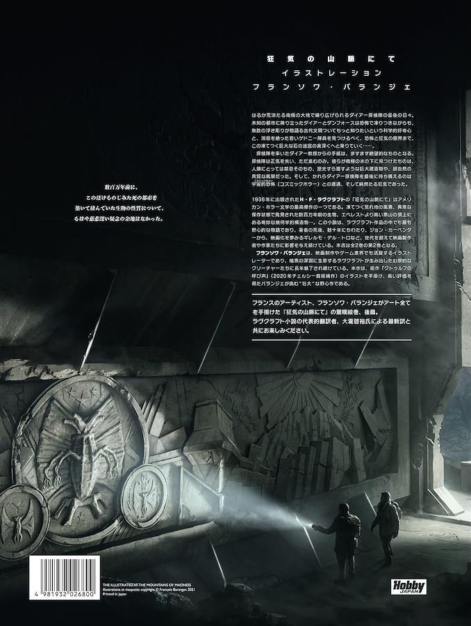 世界10ヵ国語以上で翻訳される、超絶アートと小説で織りなすビジュアルストーリーブックに、 アメリカン・ホラー文学の最高傑作の一つH・P・ラヴクラフトの『狂気の山脈にて』が登場。 本商品は第二巻です。 映画『ハリー・ポッター』や『タイタンの戦い』のストーリーボードなどを手がけ、 ビジュアルストーリーブック「クトゥルフの呼び声」で高い評価を得たフランスのイラストレーター「フランソワ・バランジェ」が描きあげた、 驚きのクトゥルフ神話イラストレーションストーリーブック。 多くのクリエイターが映像化を夢見る『狂気の山脈にて』を、 全2巻にわたる圧倒的な大判イラストと翻訳小説で、劇場にいるような感覚でお楽しみいただけます。 小説には大瀧啓裕による新訳を掲載。 クトゥルフ神話に初めて触れる人にもおすすめの一冊です。 ※本商品はイラストと小説で構成されているビジュアルストーリーブックです。TRPG、ゲーム類のルールやデータは掲載されていません。 著者・イラスト・構成:フランソワ・バランジェ 序文:マクシム・シャタン 小説原作:H・P・ラヴクラフト 小説翻訳:大瀧啓裕 商品形態:B4ハードカバー64頁フルカラー 対象年齢:14歳以上 B4ハードカバー64頁フルカラー