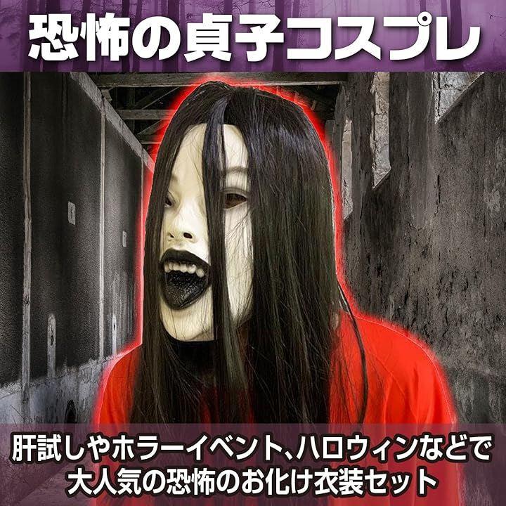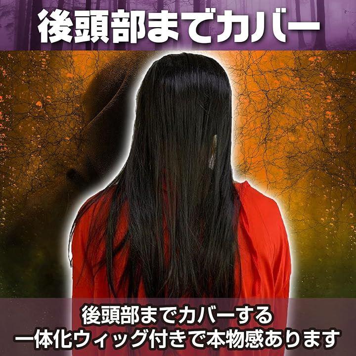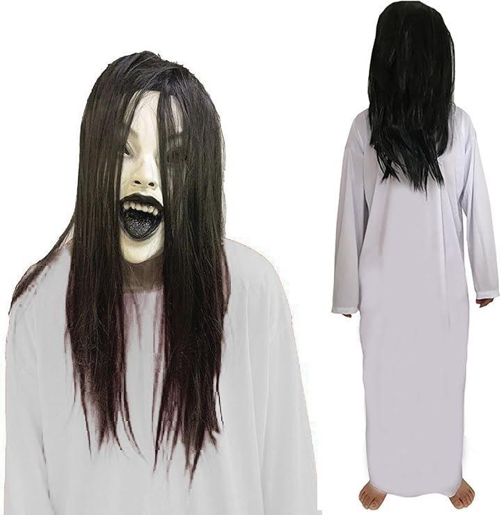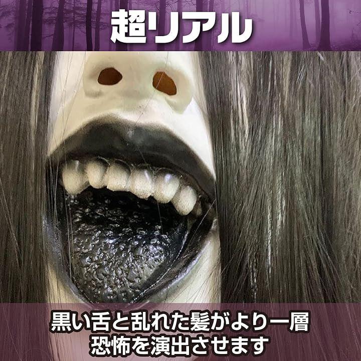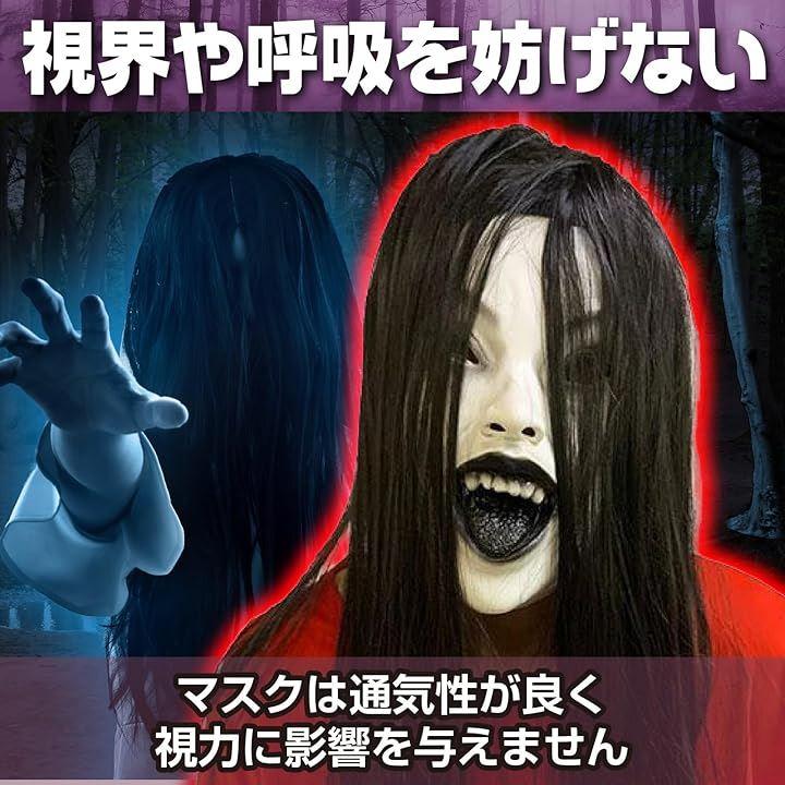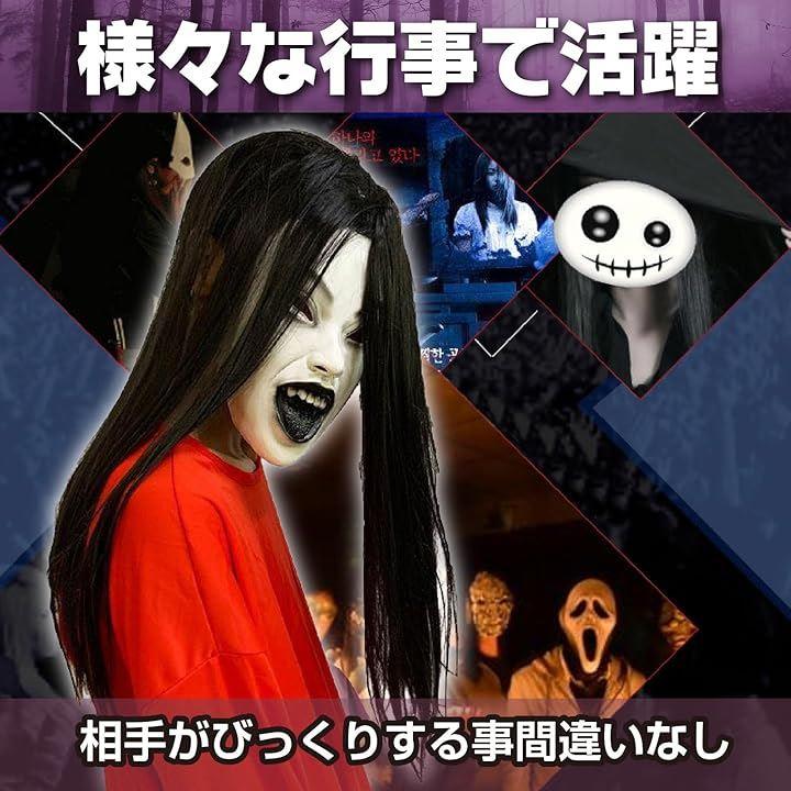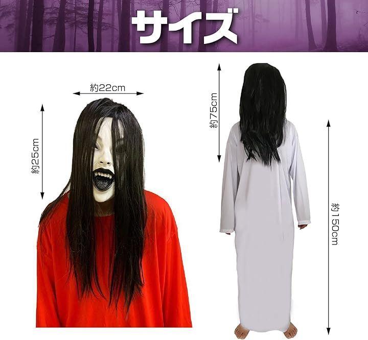 白い服と長い髪の女のマスクも含まれており、怖い雰囲気を演出します。