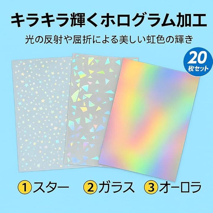 「透明感と輝きでワンランクUP」普通の写真やポスターにホログラムシートを重ねるだけで、透明感と輝きがプラスされ高級感UP。