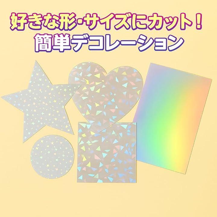 「好きな形・サイズにカット。簡単デコレーション」スター・ガラス・オーロラ柄3種類のシートを自由にカットして、手軽にデコレーションできます。