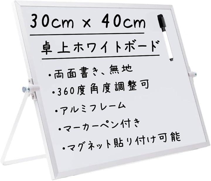 「看板や連絡版に最適」A3サイズに近い30cm x 40cmの長方形サイズのホワイトボードで卓上に置いたり、掲示物を張り付けて連絡版としてご使用頂けます。