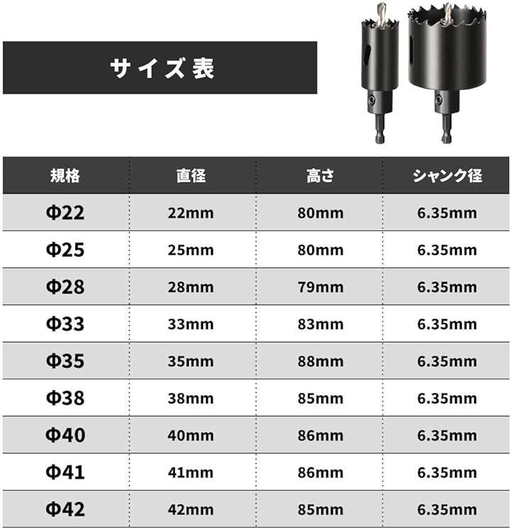 「インパクトドライバー対応」「 六角軸 6.35mm 」安価で使いやすいバイメタルホールソーです。