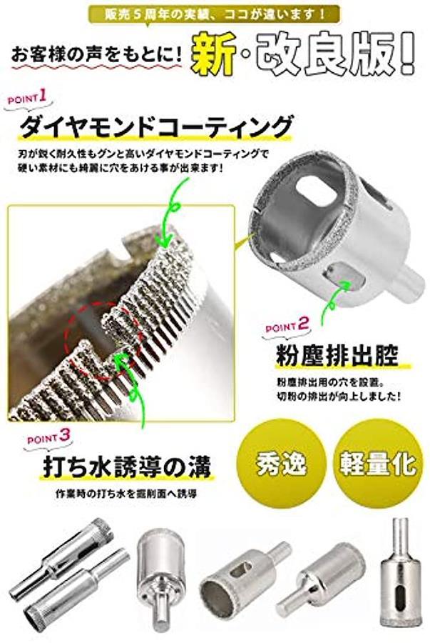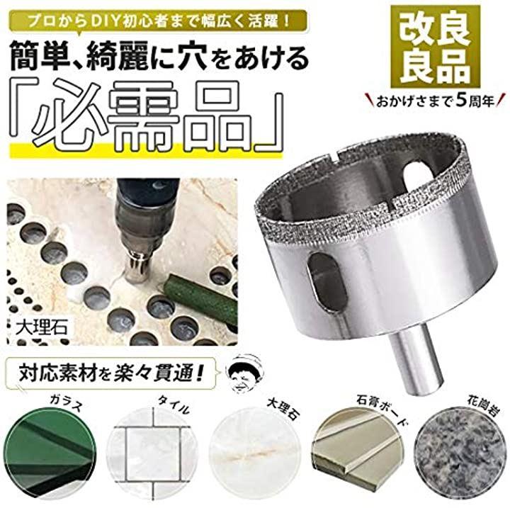 被削材 : ガラス、タイル、ガラス、タイル、陶器、大理石、レンガ、コンクリートへの穴あけ