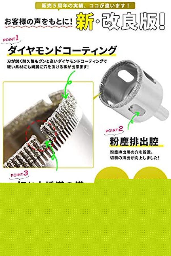 被削材 : ガラス、タイル、ガラス、タイル、陶器、大理石、レンガ、コンクリートへの穴あけ