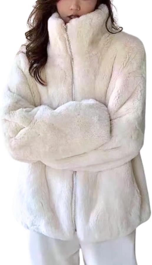 Boa jacket, boa coat, fluffy hoodie, outerwear, blouson, no-collar, warm, insulated, loungewear, haori