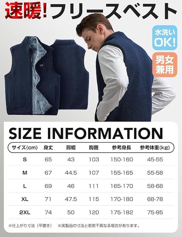 軽量で保温性に優れたボアフリース素材+6カ所ヒーターで、ふんわり暖かいヒーターベスト。