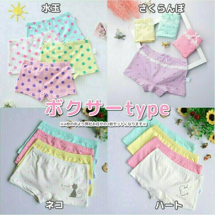 商品情報 カラー ボクサーtype ・ハート ・さくらんぼ ・ネコ ・水玉 ノーマルtype ・イエロー ・レッド ・ライトブルー ※モニターの発色の具合によって実際のものと色が異なる場合があります。 素材 綿95% スパンデックス(ストレッチ素材)5% サイズ ☆ボクサーtype☆ ◆M(120) ウエスト:22 ヒップ:28 股上:16 ◆L(130) ウエスト:24 ヒップ:29 股上:17.5 ◆XL(140) ウエスト:26 ヒップ:31.5 股上:19 ◆XXL(150) ウエスト:28 ヒップ:34.5 股上:20.5 ☆ノーマルtype☆ ◆M(120) ウエスト:21 ヒップ:25 股上:20 ◆L(130) ウエスト:22.5 ヒップ:26.5 股上:20.5 ◆XL(140) ウエスト:24 ヒップ:28.5 股上:21.5 ◆XXL(150) ウエスト:25.5 ヒップ:31.5 股上:23 ※平置き採寸となります。 ※多少の誤差が生じる場合がございます。 ご了承の上ご検討ください。 商品説明 ・好みに合わせて柄や形が選べる人気のショーツ2枚セットです! (※画像の4枚の中から当ショップお任せの2枚セットになります!4枚セットではございませんのでご注意ください) ・バリエーションをたくさんご用意!おまとめ購入にもおすすめです♪ ・外タグになっているので肌を守り安心♪ ・動きやすく履き心地の良いコットン素材が人気です♪ 検索キーワード キッズ パンツ 女の子 下着 ボクサー ショーツ 2枚セット かわいい ピンク ボクサーパンツ 人気 おすすめ お得 セット セット キッズ ボクサーパンツ キッズ 綿 女児 ジュニア イエロー グリーン バイオレット ホワイト 白 黄色 緑 むらさき 下着 クーポン対象 タイムセール中 アウトレット価格 商品説明 素材 綿95%? スパンデックス(ストレッチ素材)5% サイズ ・M(120cm) ・L(130cm) ・XL(140cm) ・XXL(150cm) 商品説明 さくらんぼや水玉模様がかわいい☆ 8種類の中から弊社おまかせの2枚セットです!(色・柄は弊社にお任せとなります) 外タグになっているので肌を守り安心♪ 動きやすく気持ちいい履き心地が人気です♪ モニターの発色の具合によって実際のものと色が異なる場合があります。