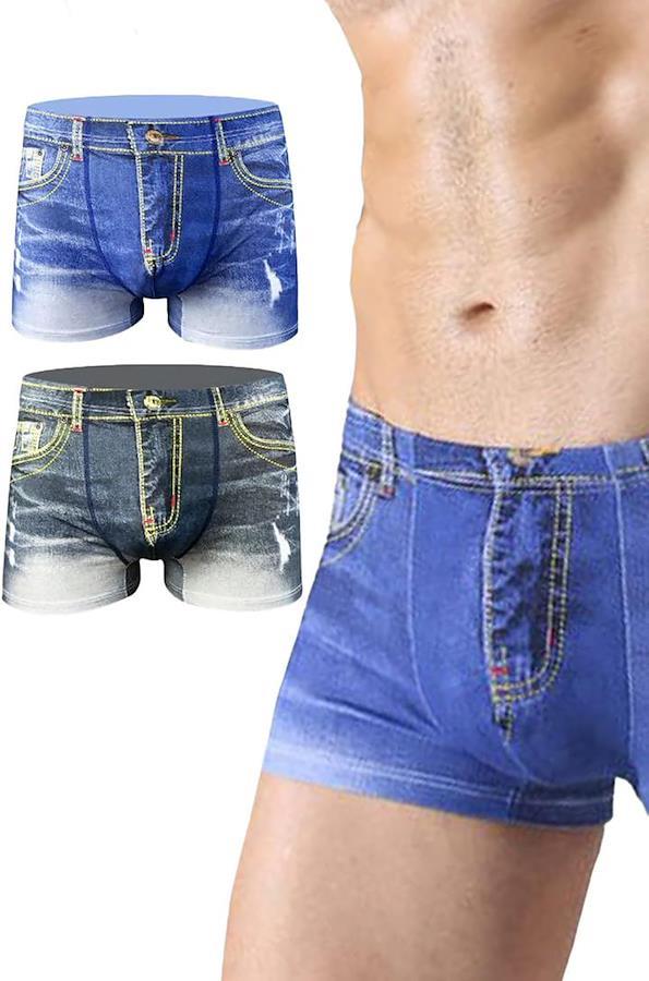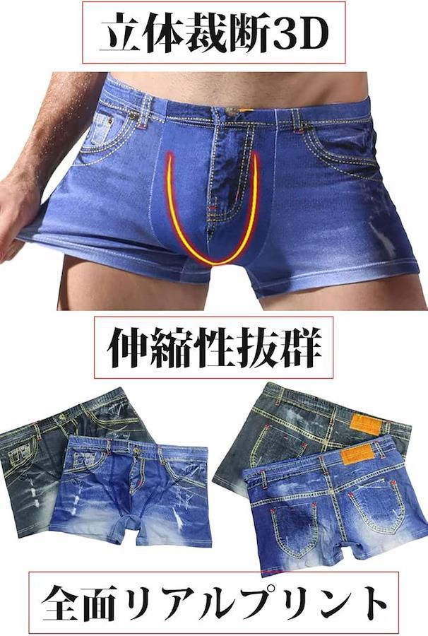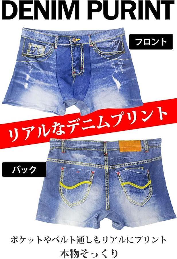 力強くインパクトのあるデニム調デザインのメンズインナーパンツ。