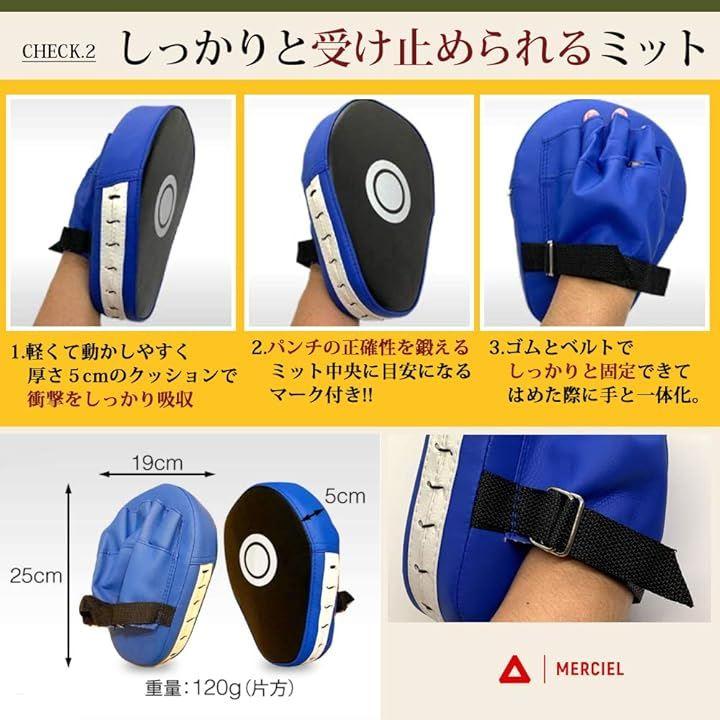 「サイズ(約)」グローブ…フリーサイズ、ミット…フリーサイズ 「重量(約)」グローブ(片手)…100g、ミット(片手)…120g 「セット内容」パンチンググローブ左右(ブラック)、パンチングミット左右(ブルー)、専用収納袋 「注意事項」パンチングミットは左右共通となっております。