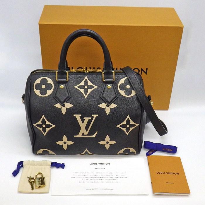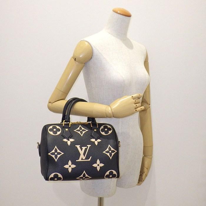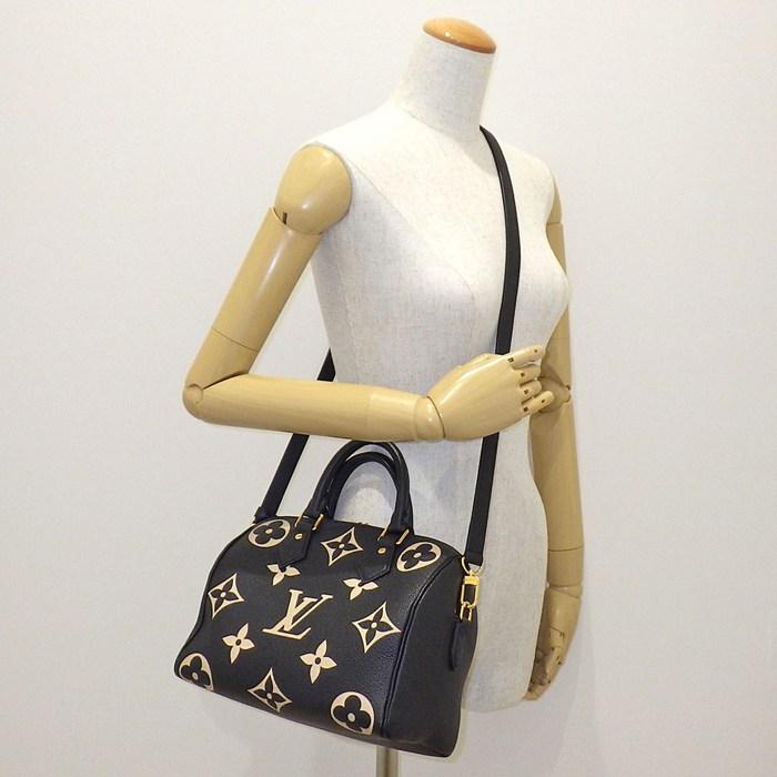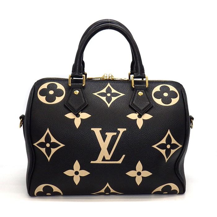 ■商品名ボストンバッグ/ハンドバッグ/ショルダーバッグ スピーディ・バンドリエール 25 M58947 ブラック/ベージュ バイカラー モノグラム・アンプラント レザー ゴールド金具 【中古】