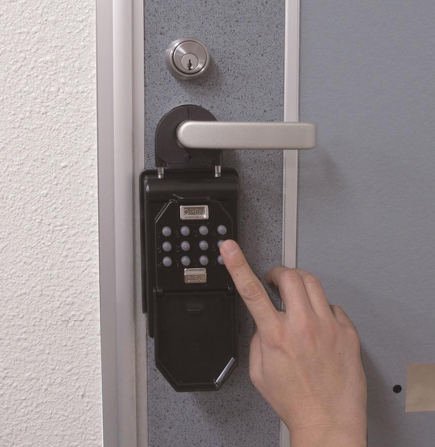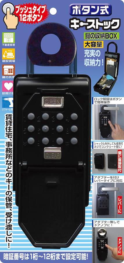 ボタン保護用カバー付なのでボタン操作時以外は、カバーで雨・風・ホコリから操作部分を守ります。大型の自動車キーやカードキー、種類によっては複数の鍵を一度に収納可能です。暗証番号は可変式で設定も簡単です。1桁から12桁までお好きな番号に設定可能です。暗証番号は4000通り以上。レバーハンドル用のアダプター付きなのでレバータイプにも取付可能です。設置場所が「ドアノブ等に引掛けて」の取付と「壁にビス止め」との取付2通りの方法を選べます。伝言メモ紙等収納の一時保管・受け渡しに最適です。(防水加工はしておりません)暗証番号を「数字」と「位置」で覚えられますので、大切な暗証番号を忘れにくく、暗い場所でも使用しやすくなっております。本体サイズ(cm)8.9×20.4×5.8