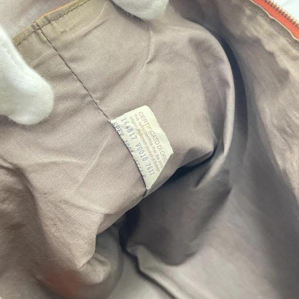 外側:型崩れがあり、全体的に傷・擦れ・擦り減り・汚れ・シワ等が見られます。特に、角には擦り減り・擦れ汚れ・色褪せ・毛羽立ち等、ファスナープルにも付け根の擦り減り・剥がれ・縁コーディングの剥がれ等かなり使用感がございます。また、ファスナーエンドのテープ部分は伸び・剥がれ・切れ等ダメージが生じています。金具には擦り傷・クスミ・変色・メッキ剥がれ等が見られます。