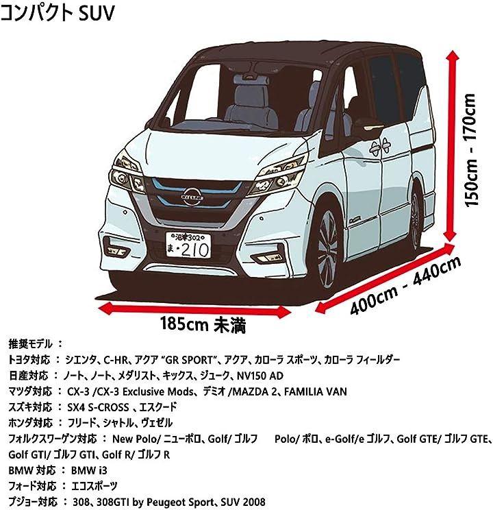 「サイズ」(約)長445cmx幅185cmx高152cm,汎用 サイズ(適合目安:車長 4m~4.4m/車幅 1.6m~1.85m),コンパクトSUV專用カバー 一般車。