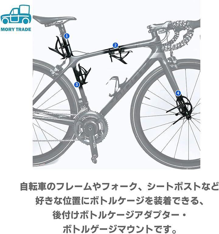 自転車のフレームやフォーク、シートポストなど好きな位置にボトルケージを取り付けることができる、後付けボトルケージアダプター・ボトルゲージマウントです。