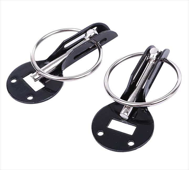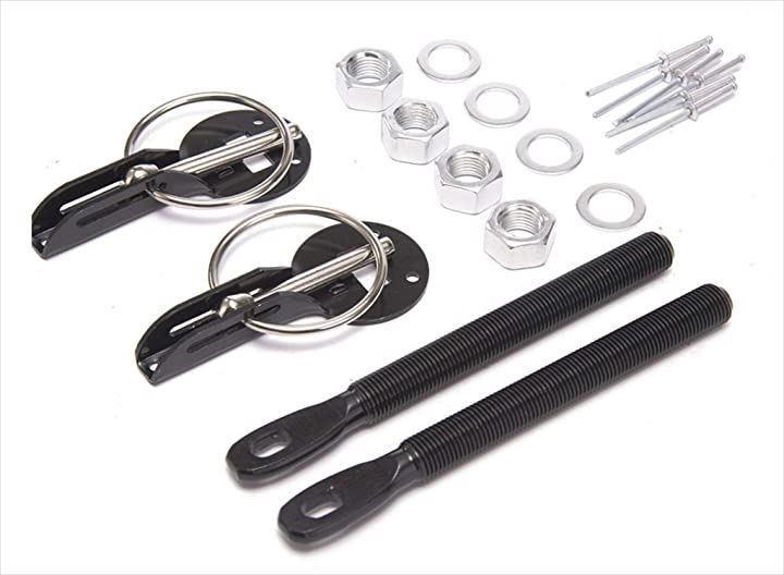 ・「内容」:ボンネットピン本体x2個 キャッチボルトx2本 キャッチボルト固定用ナット・ワッシャーx各4個 本体固定用ビス・板ナットx各6個 *ボンピン本体プレート以外のシルバーリング部分はスチール製になります(リングフック、ナット、ワッシャーはスチール製です) 「原産国」:中国