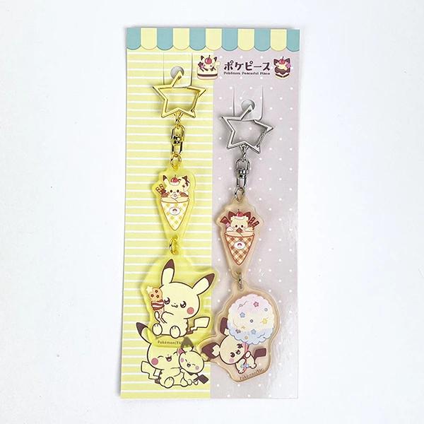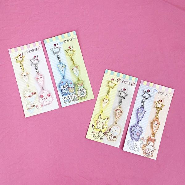 星型のカラビナがポイントのアクリルチャームキーホルダーです。涼し気なクリア感とポケモン達がスイーツデザインになっていてかわいいアイテムです♪