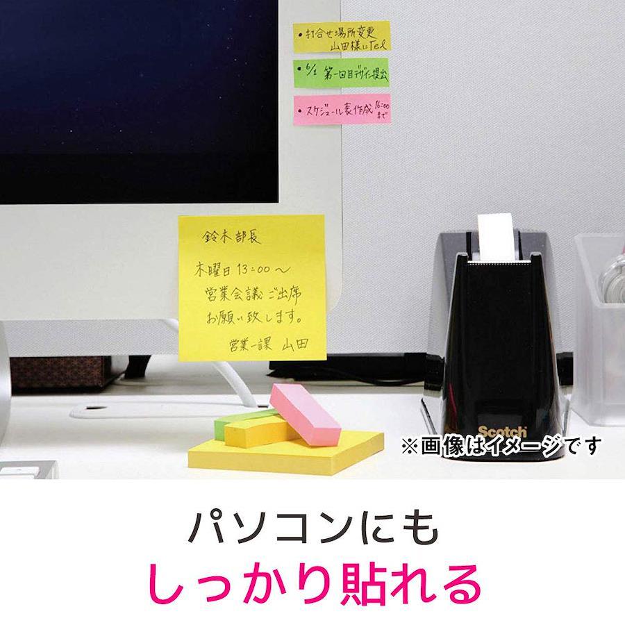 ●ふせんサイズ: 75 x 14mm。 見出しやしおりに使いやすい、細長いサイズのポストイット付箋です。●約2倍*の強粘着タイプで、クリアファイルやパソコン、電話などの樹脂面や、キャビネットや家具などのスチール面、扉、壁などの垂直面、ダンボールなど、つきにくかった場所にもしっかり貼れるので、大切な伝言やメモに最適です。しっかり貼れてきれいにはがれるのが特長の製品です。(*当社通常粘着比)●90枚x4パッド。●色分けにも便利な混色タイプ。●色:ウルトライエロー、ライム、ローズ、エレクトリックブルー0●中身が見やすく取り出しやすい、収納にも便利な紙製スリーブケース入り。
